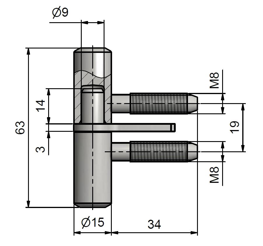 Záves okenný s klinom 60mm M8 MZn