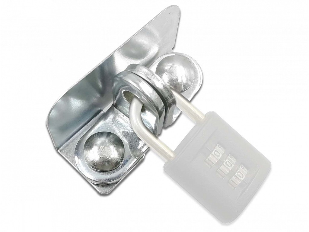 Petlica, ktorá slúži na uzamknutie dverí pomocou visiaceho zámku (nie je súčasťou balenia). Praktická striška skryje zámok pred pôsobením dažďa a snehu
