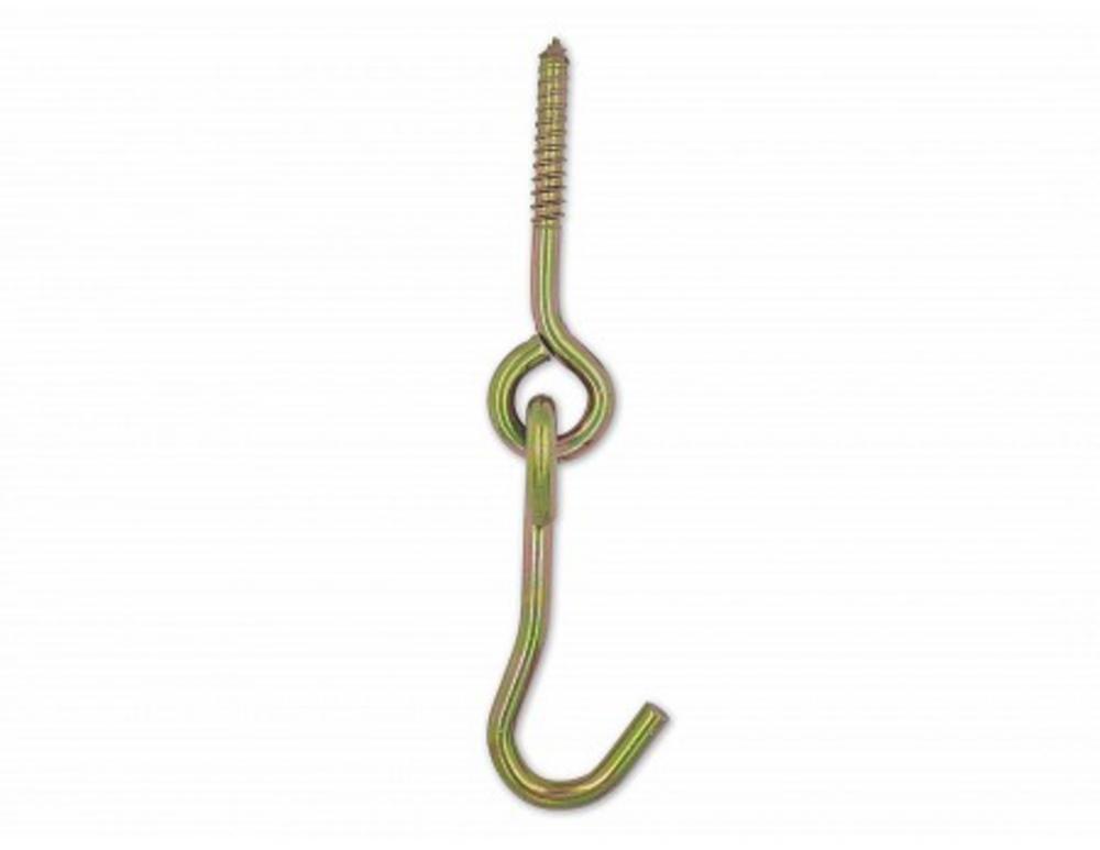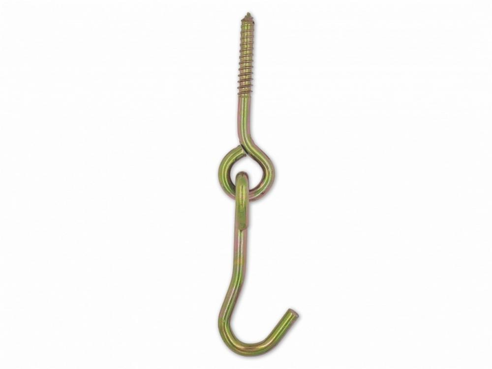 Popis: Závesný hák s vrutom na upevnenie kvetináča do stropu. Silné, stropné upevnenie. Parametre: rozmery dĺžka: 113 mm rozmery háku: 8 x112 mm materiál : kov farba: zinok / žltá