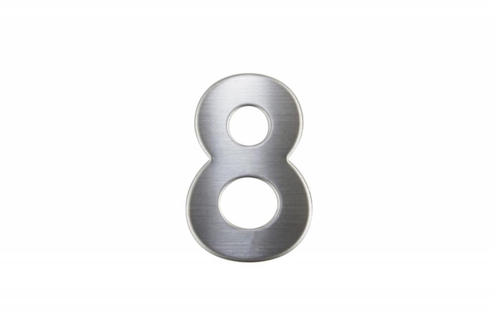 Nerezové domové číslo v plochom 2D prevedení Montáž lepením pomocou obojstrannej pásky Vhodné na hladké a stredne zrnité povrchy Balenie obsahuje obojstrannú pásku