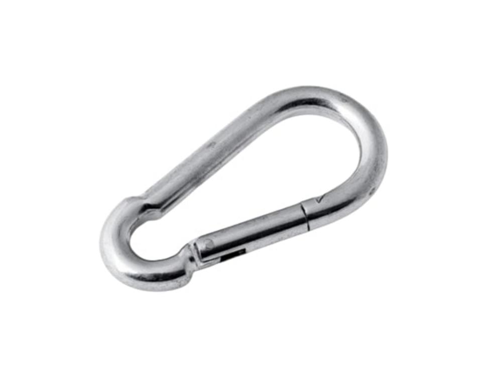 Karabína na laná s pružinou vyrobená z konštrukčnej ocele a žiarovo pozinkovaná pre zvýšenie životnosti a pevnosti DIN 5299 Dĺžka: 100mm Hrúbka: 10mm Nosnosť: 350kg Pozor, produkt nie je určený na zdvíhanie ťažkých bremien
