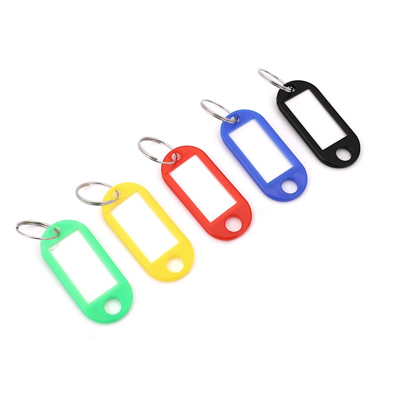 Farebné plastové visačky na kľúče, s papierikom na označenie. Predáva sa v ucelenom balení 100 kusov