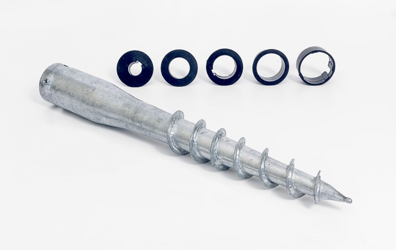 Zemné skrutky sa používajú na kotvenie stĺpikov do zeminovému podkladu. Jednoduchá aplikácia je zaistená pomocou uťahovacej tyče a ponúka tak bezpečné a rýchle upevnenie Vhodné pre rúrku O 24 až 64 mm Každý vrut obsahuje zaisťovaciu skrutku M8, plastovú čiapočku a vymedzovacie plastové redukcie na rúrky pr. 24, 36, 42, 50 a 60 mm Dodávame bez uťahovacej tyče, v prípade potreby je nutné objednať zvlášť Vďaka redukciám je možné zemnú skrutku použiť na rúry s priemerom - 24, 36, 50 a 60 mm Rozmery: 68x650mm Materiál: oceľ/ poz.