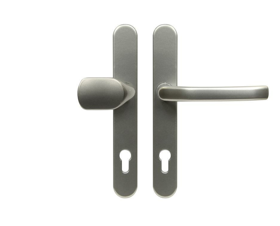 Masívne hliníkové kovanie pre vstupné dvere Prevedenie kľučka - madlo Zakryté šróby na vnútornom štíte kovania Vratný mechanizmus kľučky tvorený štyrmi pružinami s hranolom Pre hrúbku dverí 78-88mm (možnosť skrátiť až na 40mm) Rozteč: 92mm V balení sa nachádza štvorhran 8x8mm, 3x spojovacie šróby M6x100mm, a vŕtacia šablóna