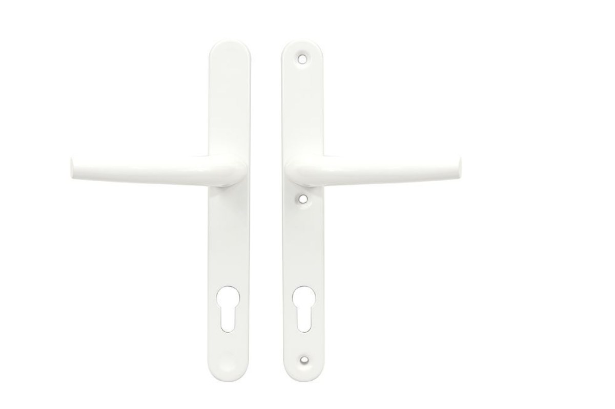 Masívne hliníkové kovanie pre vstupné dvere Prevedenie kľučka - kľučka Viditeľné šróby (s plastovými krytkami) na vonkajšom štíte Vratný mechanizmus kľučky tvorený štyrmi pružinami s hranolom Pre hrúbku dverí 72-86mm (možnosť skrátiť až na 40mm) Rozteč: 92mm V balení sa nachádza štvorhran 8x8mm, 3x spojovacie šróby M6x100mm, a vŕtacia šablóna