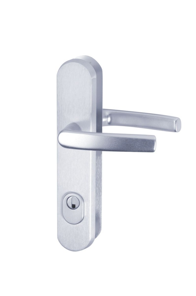 Bezpečnostné kovanie v prevedení kľučka - kľučka, s prekrytím (ZA), rozteč 90mm Povrchová úprava strieborný elox (F1) Trieda bezpečnosti 3 Použite s cylindrickou vložkou v triede bezpečnosti minimálne 3 Vhodné pre hrúbku dverí: 40-55mm (pre hrubšie dvere je nutné doobjednať predlžovaciu sadu)