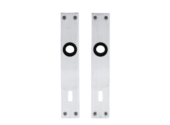 Hliníkové štítové kovanie bez kľučky v prevedení na kľúč, rozteč 72mm Dĺžka: 220mm Šírka: 38mm Hrúbka: 5mm Rozteč: 90mm Rozteč otvorov na vruty: 200mm na výšku a 23mm na šírku Materiál: vysoko leštený hliník V Balení sa nachádzajú 2 kusy štítov