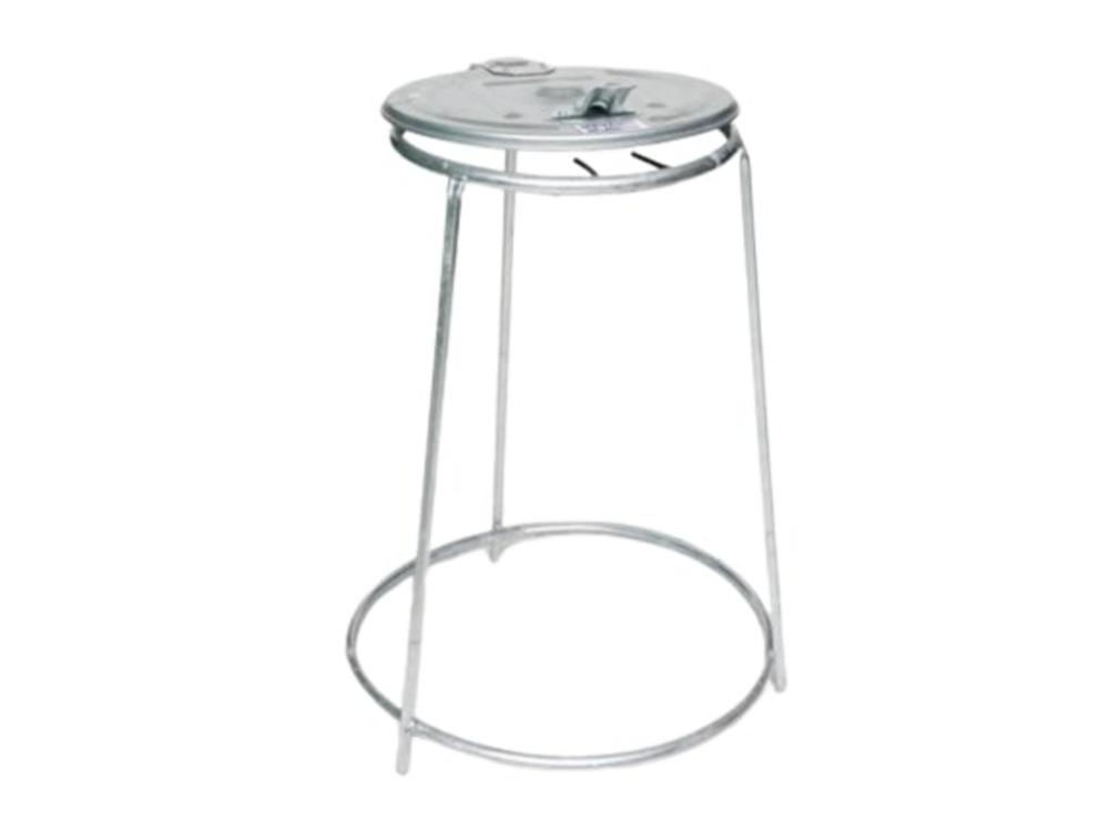 Praktický stojan na vrecia 120l s vekom Konštruovaný ako trojnohý rám kužeľového tvaru Nosná časť je tvorená tromi zvislými stojkami - spojené hornou a dolnou profilovou obručou Vo vnútri horného profilu je vložená pružná obruč - slúži na upevnenie polyetylénových vriec Ľahké a rýchle uchytenie vriec umožňuje jednoduchú manipuláciu s odpadom