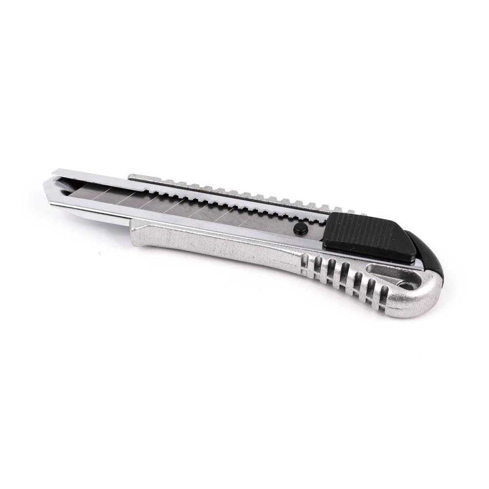 Univerzálny odlamovací nôž so šírkou čepele 18mm Profilovaná rukoväť s tvrdenou gumou zaisťuje pevné uchopenie Možno ho použiť na rezanie tapiet, kartónu, pások, káblov, kobercov, papiera, látok, kartónu, fólie, gumy, plastov, dreva a v záhradníctve. Vďaka vysokej kvalite spracovania a odolnosti je nenahraditeľný v každej kancelárii, domácnosti, garáži, dielni, domácnosti, sklade, na stavbe alebo pri rekonštrukcii Odolná skrutková aretácia odlamovacej čepele Šírka čepele: 18mm Materiál: kov/plast