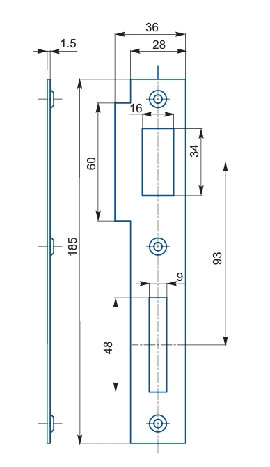 Protiplech k zadlabaciemu zámku Vŕta sa na zárubňu a slúži ako ochrana zárubne tam kde, sa používa zadlabací zámok a zároveň zabezpečuje spoľahlivé fungovanie zadlabacieho zámku Vhodný pre zámky s roztečou 90mm
