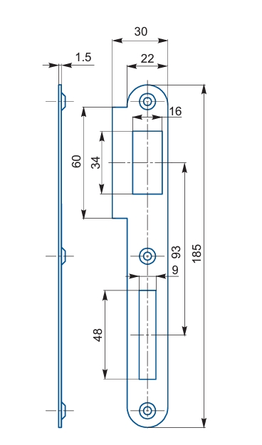 Protiplech k zadlabaciemu zámku Vŕta sa na zárubňu a slúži ako ochrana zárubne tam kde, sa používa zadlabací zámok a zároveň zabezpečuje spoľahlivé fungovanie zadlabacieho zámku Vhodný pre zámky s roztečou 90mm