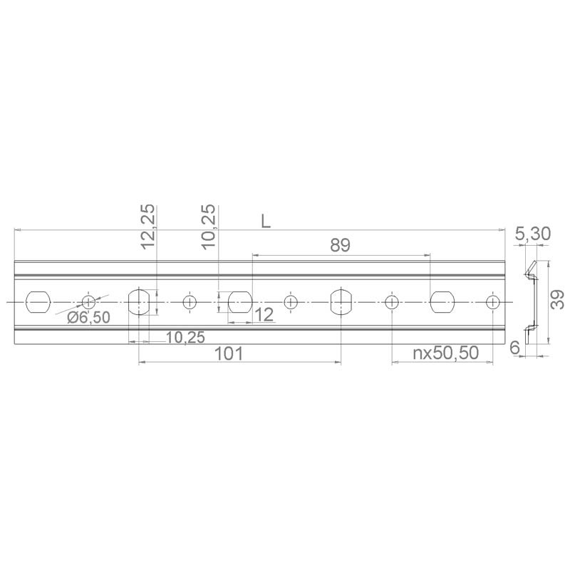 Rektifikačné tyče, slúži na zavesenie kuchynských skriniek a iného nábytku, ktorý sa pripevňuje na stenu Dĺžka: 2 m Šírka: 39mm Hrúbka materiálu: 1,2mm