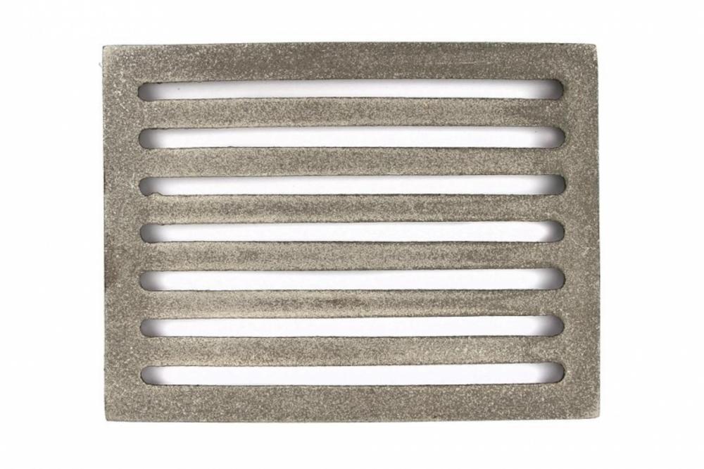 Kvalitný liatinový rošt šedej farby pre krbové kachle, pece, sporáky atď. Slovenská výroba Rozmery: 210 x160 x 15 mm Materiál: liatina