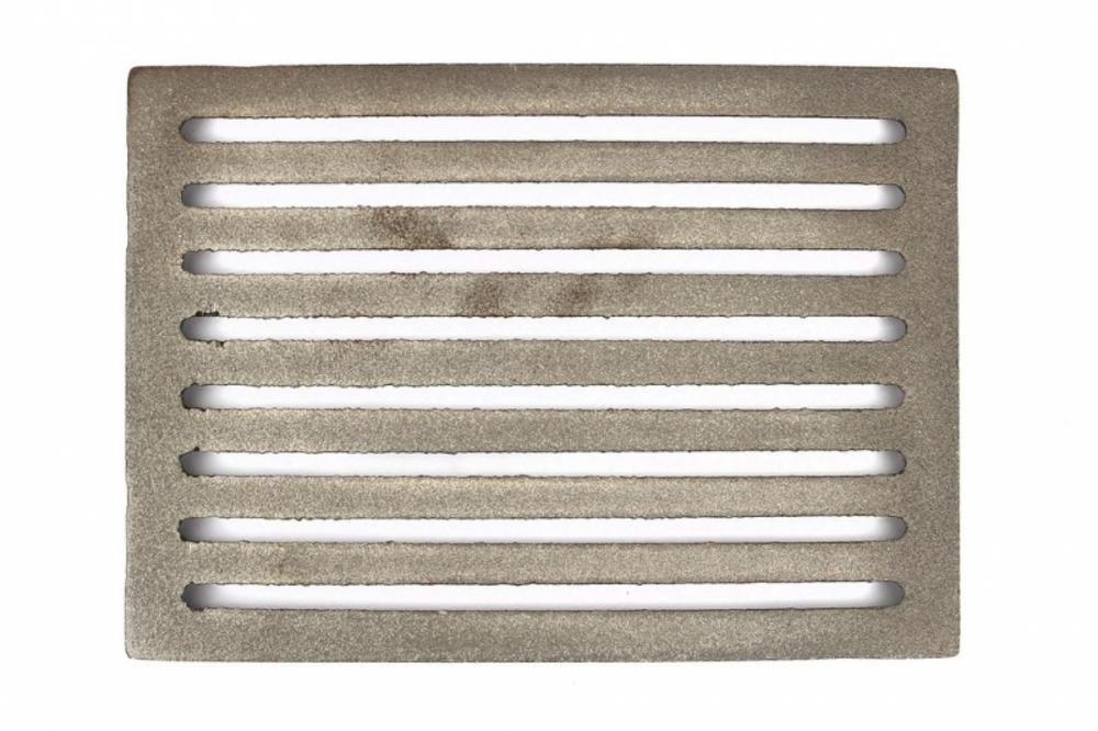 Kvalitný liatinový rošt šedej farby pre krbové kachle, pece, sporáky atď. Slovenská výroba Rozmery: 240 x170 x 15 mm Materiál: liatina