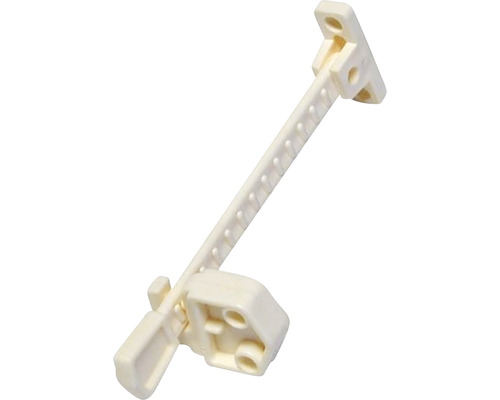 Vetracia poistka slúži primárne k montáži na okná, alebo dvere, kedy bráni v ich otváraniu a zatváraniu v rámci prievanu, alebo ako prevencia pred únikom detí či zvierat do iných priestorov Pomocou poistky môžeme chrániť svoju sklenenú výplň pred poškodením, mechanickým vplyvom, alebo pred nechceným otvorením Dĺžka: 140 mm Šírka: 15 mm Farba: biela Materiál: plast