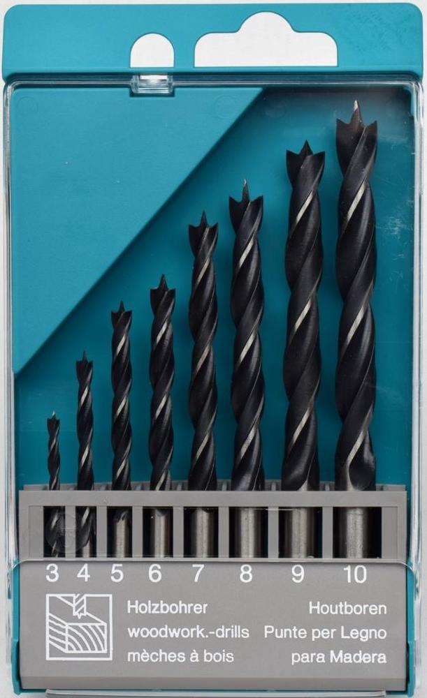 8-dielna súprava vrtákov do dreva Obsahuje vrtáky s priemerom 3, 4, 5, 6, 7, 8, 9 a 10mm Tieto vrtáky sú určené na vŕtanie presných, hladkých otvorov do dreva Materiál: HSS oceľ