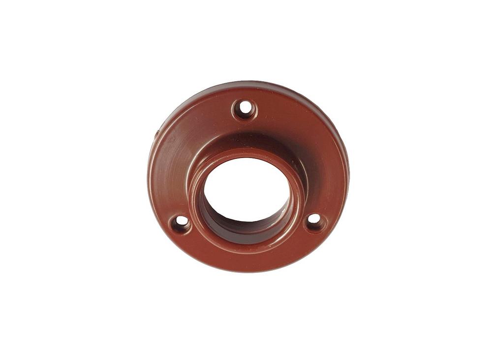 Skriňová ružica je určená do nábytkových skríň na uchopenie stredovej vešiakovej tyče Montuje sa pomocou skrutiek Vnútorný priemer: 25mm Vonkajší priemer: 55 mm Materiál: plast Farba: hnedá