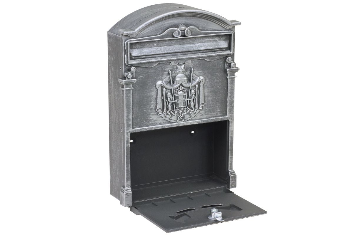 Elegantný dizajn poštovej schránky z modelovej rady Ashford si určite zamilujete na prvý pohľad Motív historického erbu na prednej strane zvýrazní nadčasovosť Rozmer: š-v-h: 252 x 410 x 80 mm Rozmer vhodu š-v: 221 x 36 mm Hrúbka materiálu: 1,8 mm Farba: strieborná prášková Balenie vrátane montážneho materiálu a 2 ks kľúčov