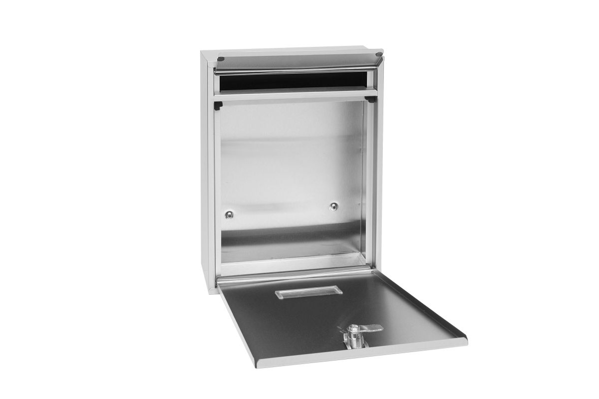 Nerezová schránka, možnosť skladania do nástenných zostáv Predný krytý otvor pre vhodenie pošty Dvierka vyklápané dole Rozmer: š-v-h:260 x350 x 85 mm Materiál: nerez Vrátane montážneho materiálu a 2 ks kľúčov