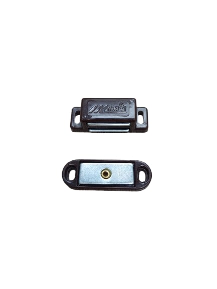 Magnetická sklapka na nábytok. Skladá sa z dvoch častí - magnetickej časti a protiplechu