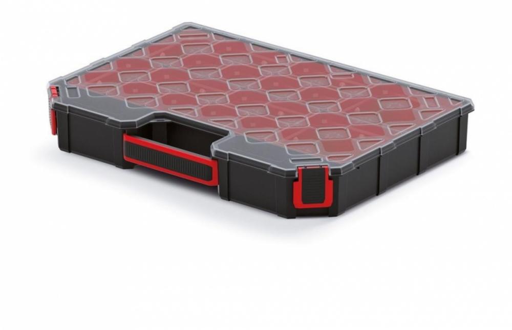 Multifunkčný organizér s transparentným vekom pre prehľadnosť uložených predmetov s vyššou odolnosťou. 16 škatuliek vložených v organizéry zaručí prehľadnosť skladovaných predmetov Dĺžka: 39 cm Šírka: 28,4 cm Výška: 6 cm Hmotnosť: 732 g