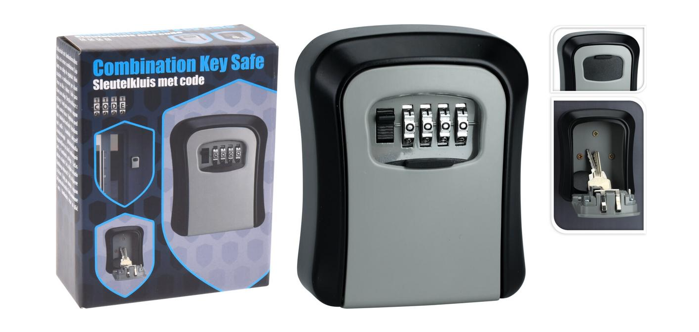 Pre uloženie kľúčov a kariet s mechanickým zámkom a krytom Bezpečnostná depozitná schránka vyrobená z ocele uchráni vaše kľúče či malé šperky nielen pred zlodejmi, ale taktiež pred nepriaznivým počasím Depozitná schránka obsahuje kombinačný zámok, na ktorom si nastavíte vlastný kód, ktorý môžete kedykoľvek neskôr zmeniť 10000 číslených kombinácií Vnútorné rozmery: š-v-h: 64 × 9 × 31 mm (úložný priestor na kartu) Rozmery úložného priestoru: š-v-h: 64 × 48 × 31 mm (úložný priestor na kľúče) Balenie obsahuje materiál potrebný k montáži Hmotnosť: 480g