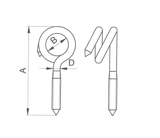 Hák do dreva (pozor, nie je vhodný na zavesenie hojdačky) Celková dĺžka A: 120 mm Hrúbka D: 7,1mm Priemer oka B: 23mm Materiál: kov/ lesklý