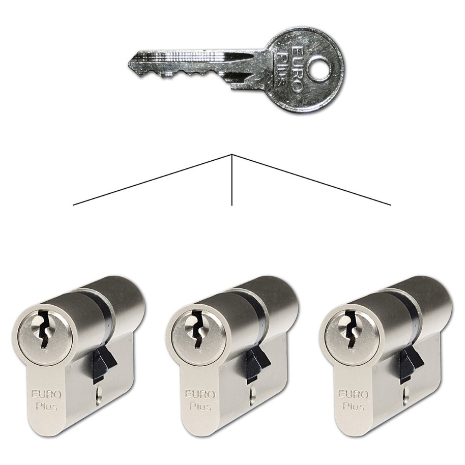 Vložky sú vhodné na uzamknutie bránky,garážovej brány, pivnice alebo záhradného domčeka. Všade tam kde sa vyžaduje dlhá životnosť a postačuje nižšia bezpečnosť. Sada na spoločný uzáver (SU) - jedným kľúčom otvoríte všetky 3 vložky Rozmer vložiek: 30mm + 35mm (celková dĺžka 65 mm Materiál vložiek a kľúčov: mosadz Povrchová úprava vložiek : matný nikel (NI) Certifikovaná podľa EN1303 na 50 000 cyklov Hmotnosť netto: 0,75 kg / set Balenie vrátane 9 ks predľžených kľúčov, 3 + 3 skrutka 50 + 60 mm Voľne kopírovateľný kľúč