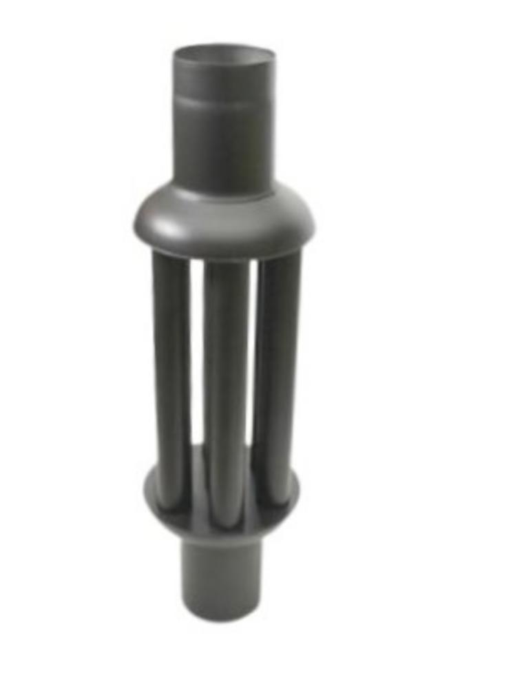Vďaka teplovzdušnému výmenníku toto teplo využijete a zvýšite účinnosť kachlí Studený vzduch prúdi zdola do kanálov vo výmenníku, kde je ohrievaný a následne ich ohriaty vzduch odovzdávaný do priestoru Teplovzdušný výmenník sa jednoducho vkladá medzi dymovod Slúži tak ako ďalšia rúra dymovodu Priemer:160 mm Dĺžka: 650 mm Hrúbka: 1,5 mm