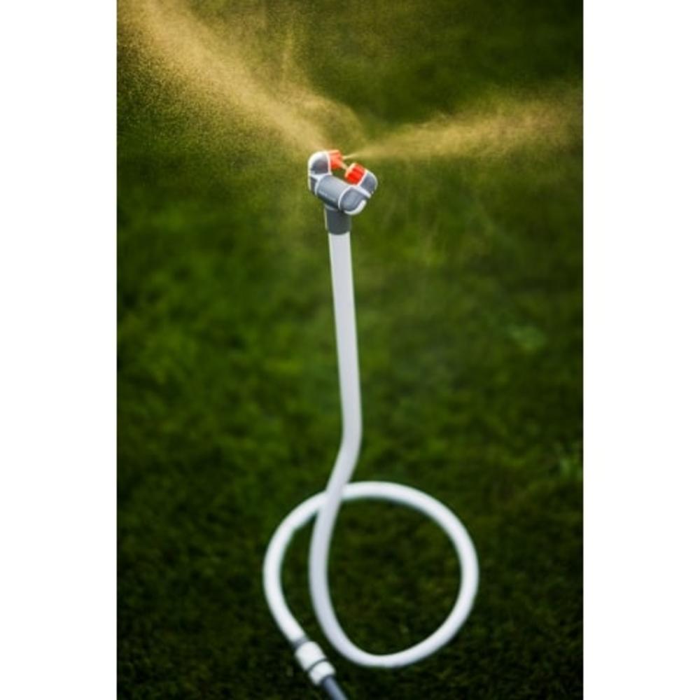 Osviežujúca vodná hmla v rozpálených letných dňoch schladí každého Na vašej záhrade môžete spojiť dve užitočné funkcie naraz, osviežujúca letná vodná hmla, ktorá poteší nielen vaše deti, ale pritom zavlaží aj váš vyprahnutý trávnik Materiál: plast