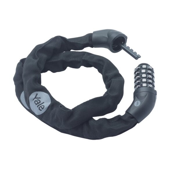 Reťazový zámok na bicykel Yale na kód Použiť ho môžete aj na uzamknutie kolobežky, kočíka, grilu, záhradného nábytku a ďalšieho vybavenia Vyrobený je z veľmi kvalitnej ocele a odolný voči poveternostným vplyvom, čo zaručí jeho dlhodobú spoľahlivosť aj v náročných vonkajších podmienkach Uzamyká sa pomocou 5-miestneho kódu Dĺžka: 900mm Priemer lanka: 6mm