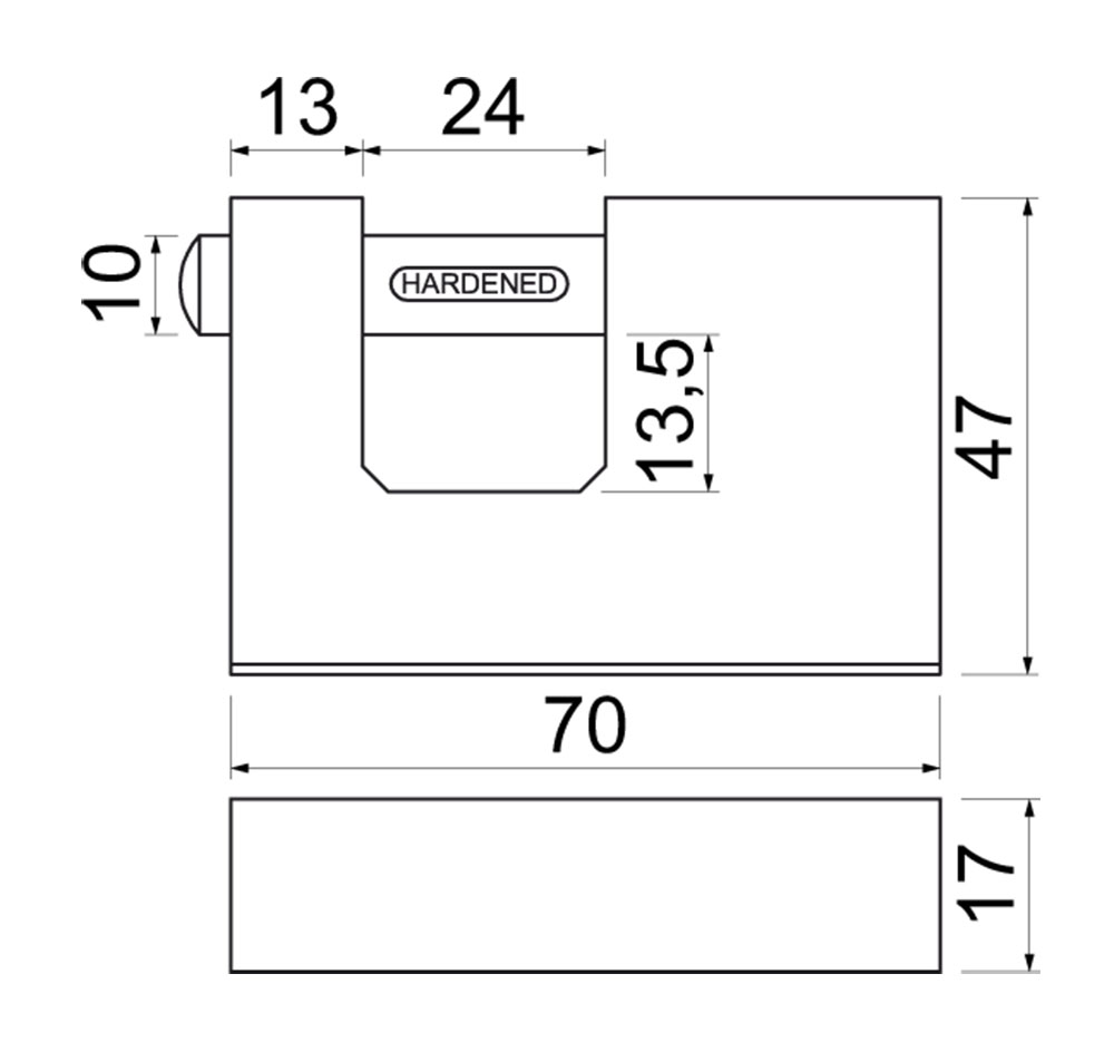 Špecifický tvar telesa zámku obmedzuje možnosť prekonania strmeňa Vodorovný strmeň zámku HARDENED Vložka zámku so 6 odpruženými stavítkami