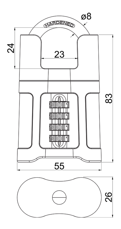 Vyrobený zo zliatiny zinku Oblúk HARDENED Nastavenie vlastnej kombinácie, ktorú môžete kedykoľvek zmeniť 10.000 kombinácií zámku
