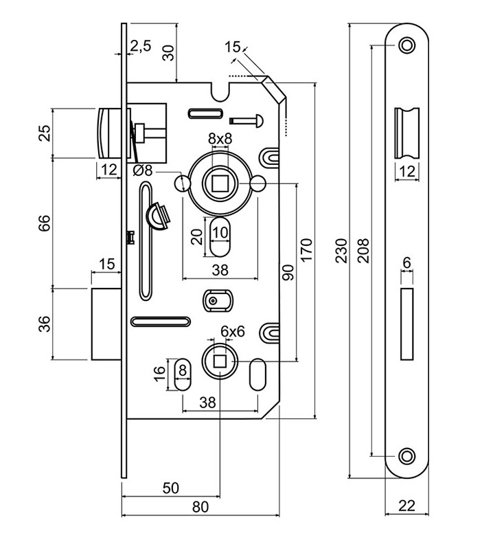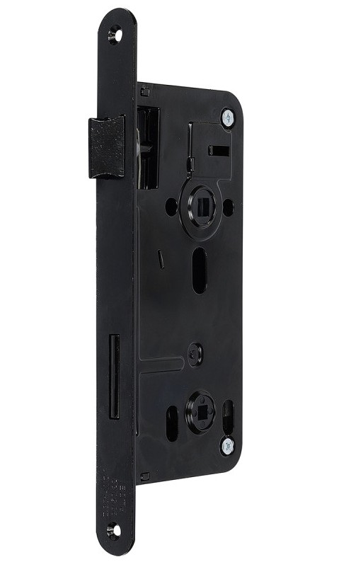 Zadlabací zámok pre WC kľučku Pravoľavá strelka Jednozápadková závora V balení sa nachádzajú 2ks vrutov Povrchová úprava - čierna