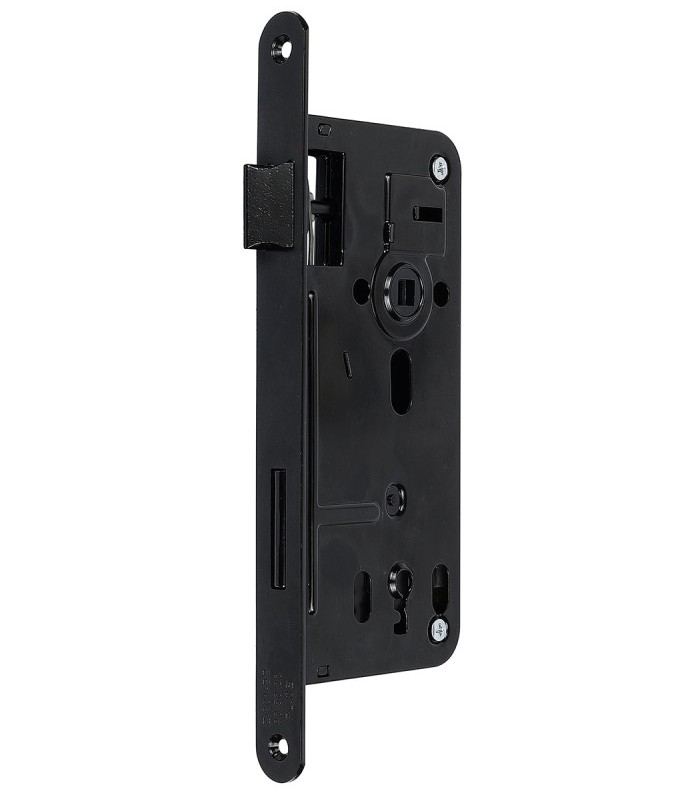 Zadlabací zámok pre obyčajný kľúč Pravoľavá strelka Jednozápadková závora V balení sa nachádzajú 2 kľúče a vruty Povrchová úprava - čierna