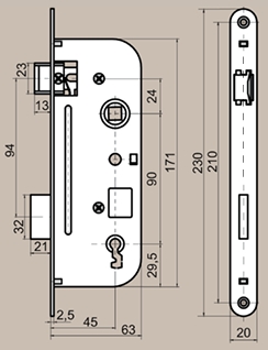 Ako správne vybrať zadlabací zámok? rozteč – vzdialenosť medzi stredom kľučky (osou štvorhranu) a stredom otvoru pre uzamykací mechanizmus (napr. pre cylindrickú vložku) backset – vzdialenosť od čela zadlabacieho zámku k ose kľučky hĺbka (šírka) zádlabu výška čela šírka čela typ otvárania dverí – pravé alebo ľavé