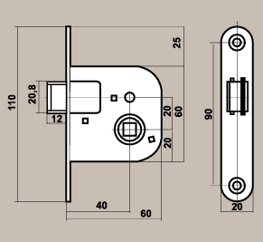 Ako správne vybrať zadlabací zámok? rozteč – vzdialenosť medzi stredom kľučky (osou štvorhranu) a stredom otvoru pre uzamykací mechanizmus (napr. pre cylindrickú vložku) backset – vzdialenosť od čela zadlabacieho zámku k ose kľučky hĺbka (šírka) zádlabu výška čela šírka čela typ otvárania dverí – pravé alebo ľavé