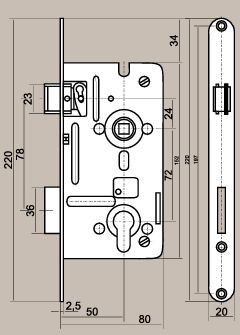 Ako správne vybrať zadlabací zámok? rozteč – vzdialenosť medzi stredom kľučky (osou štvorhranu) a stredom otvoru pre uzamykací mechanizmus (napr. pre cylindrickú vložku) backset – vzdialenosť od čela zadlabacieho zámku k ose kľučky hĺbka (šírka) zádlabu výška čela šírka čela typ otvárania dverí – pravé alebo ľavé